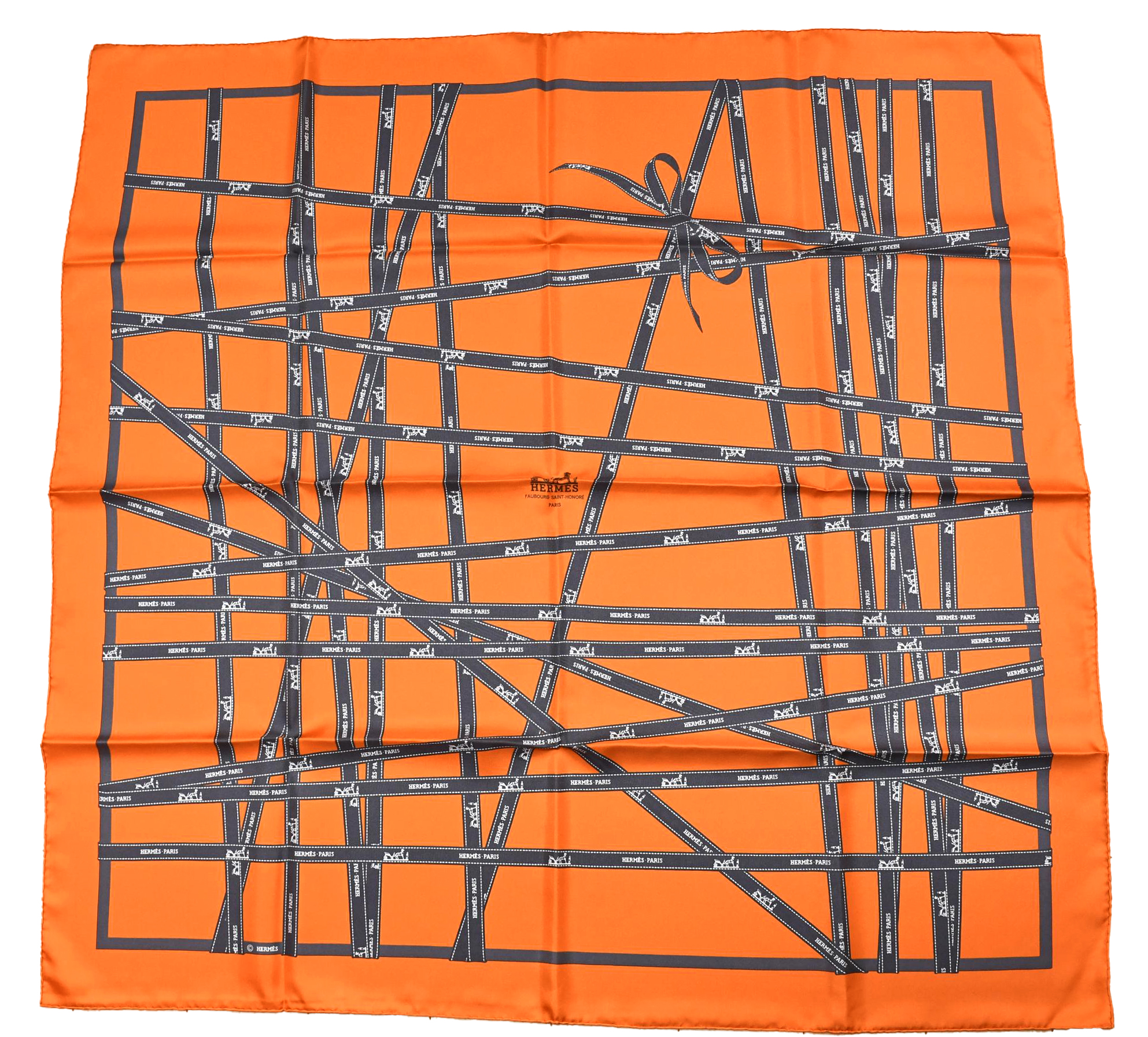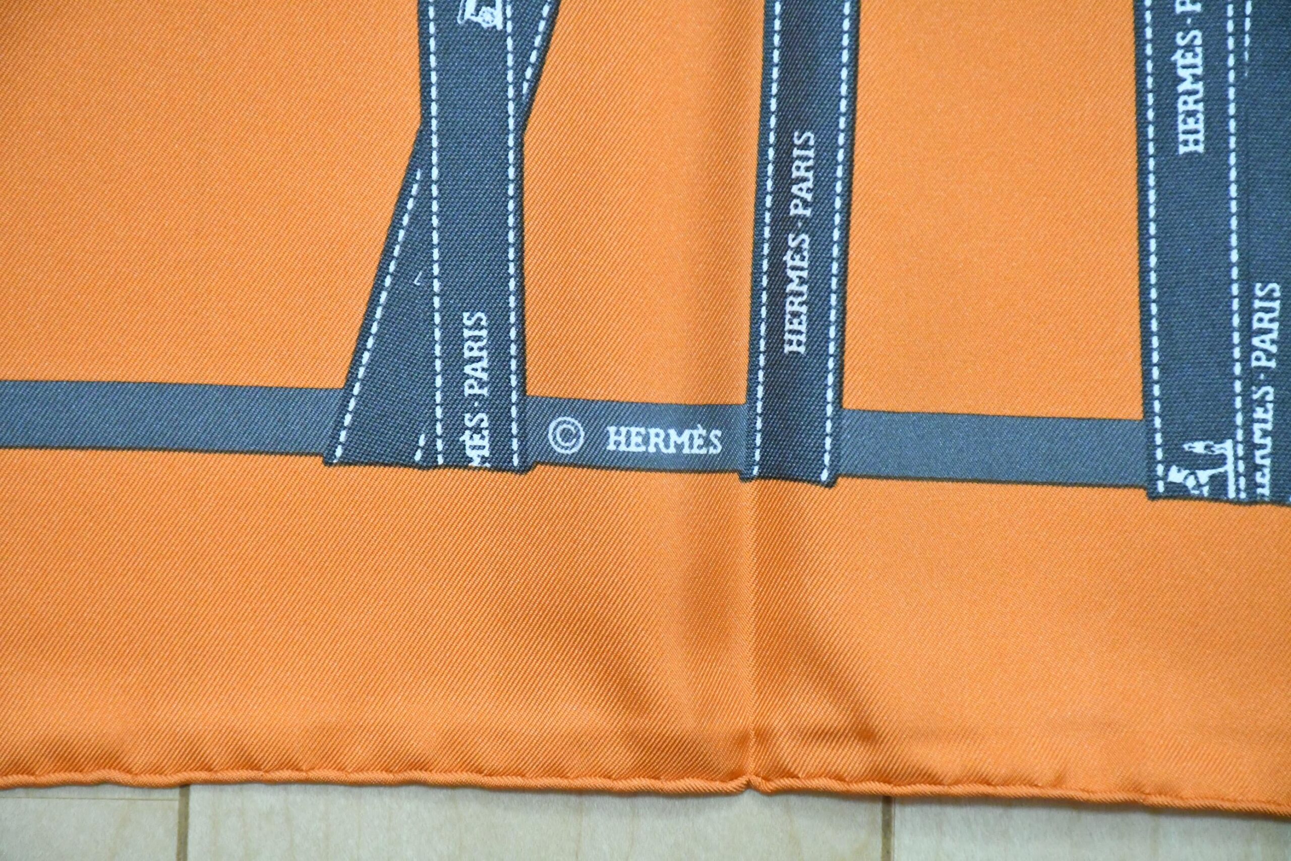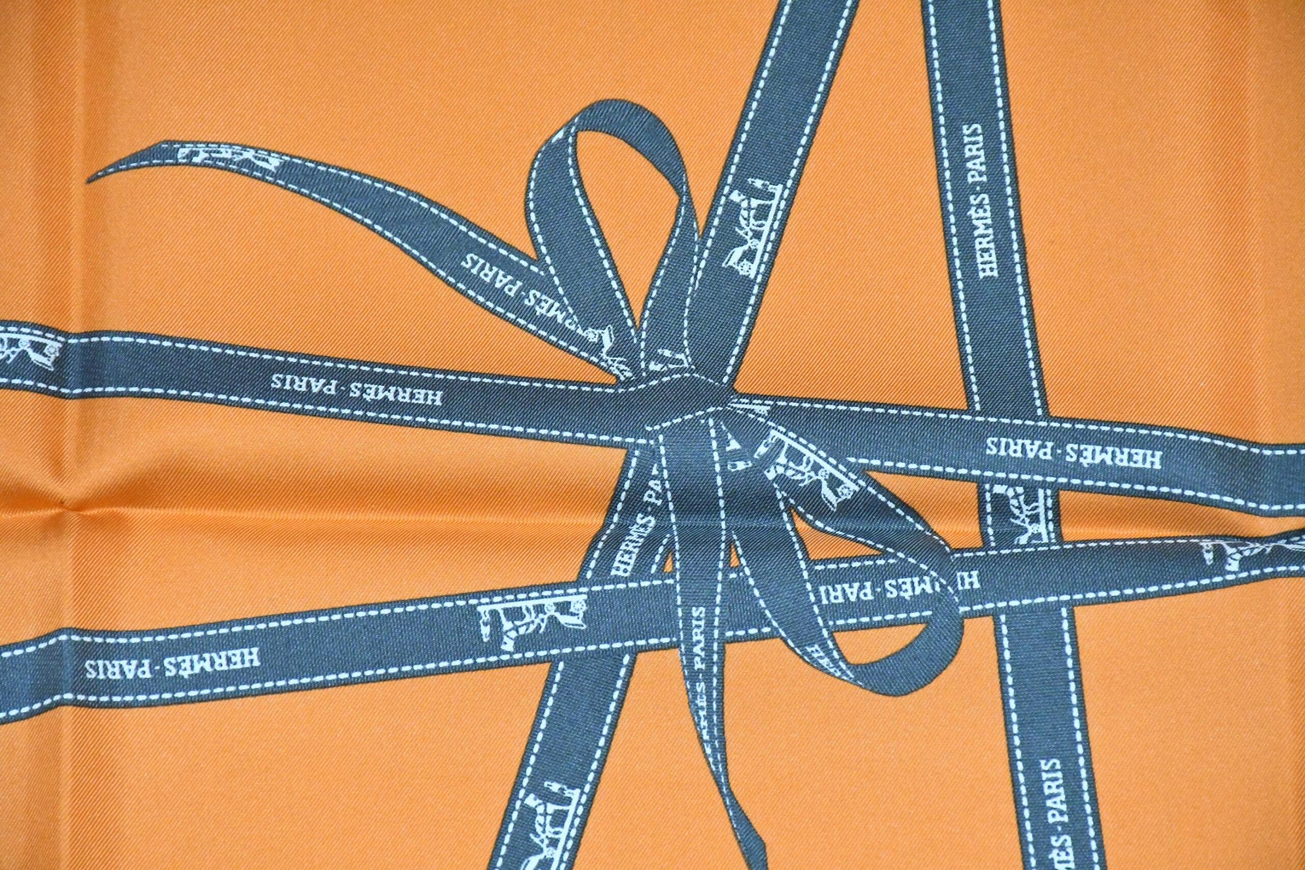 Hermes Scarf Bolduc by Jean Louis Dumas Silk 90 cm ribbon orange Carre 35″ RA77